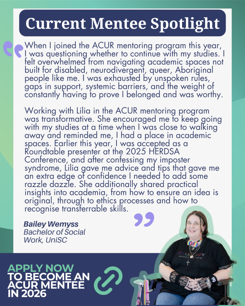 - ACUR conference student attendees automatically receive one year of ACUR student membership. Students that did not attend the ACUR conference can apply for membership at: https://www.acur.org.au/student-membership/