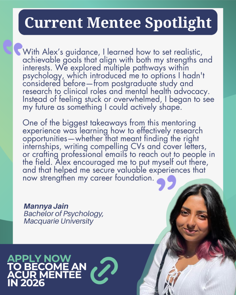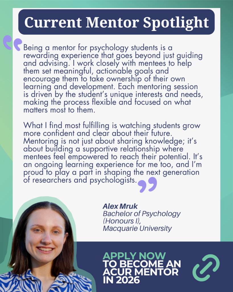 The ACUR Undergraduate Research Mentoring Program will run from Feb to May and consists of a minimum of four one-hour mentoring sessions. These sessions may be conducted as either one-on-one meetings or group-style sessions, depending on the mentor’s preferred approach.