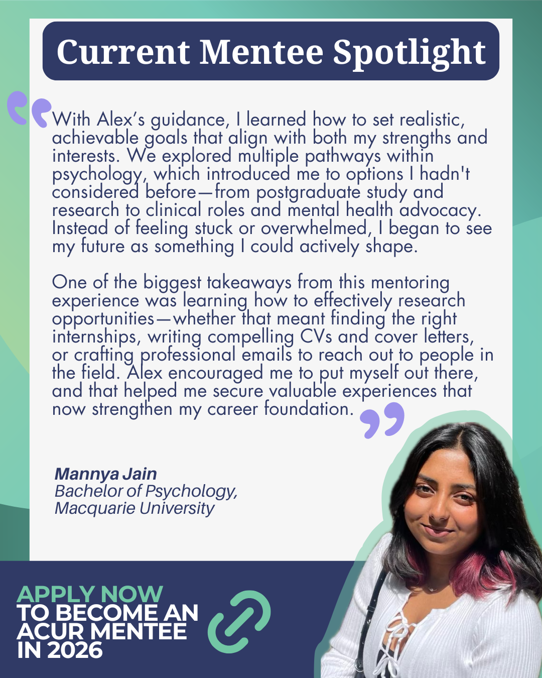As a student mentee, you’ll join a student-led program supporting your academic, professional, and personal growth. You’ll receive a mentoring guide with suggested topics and questions, but the focus of your sessions is up to you.